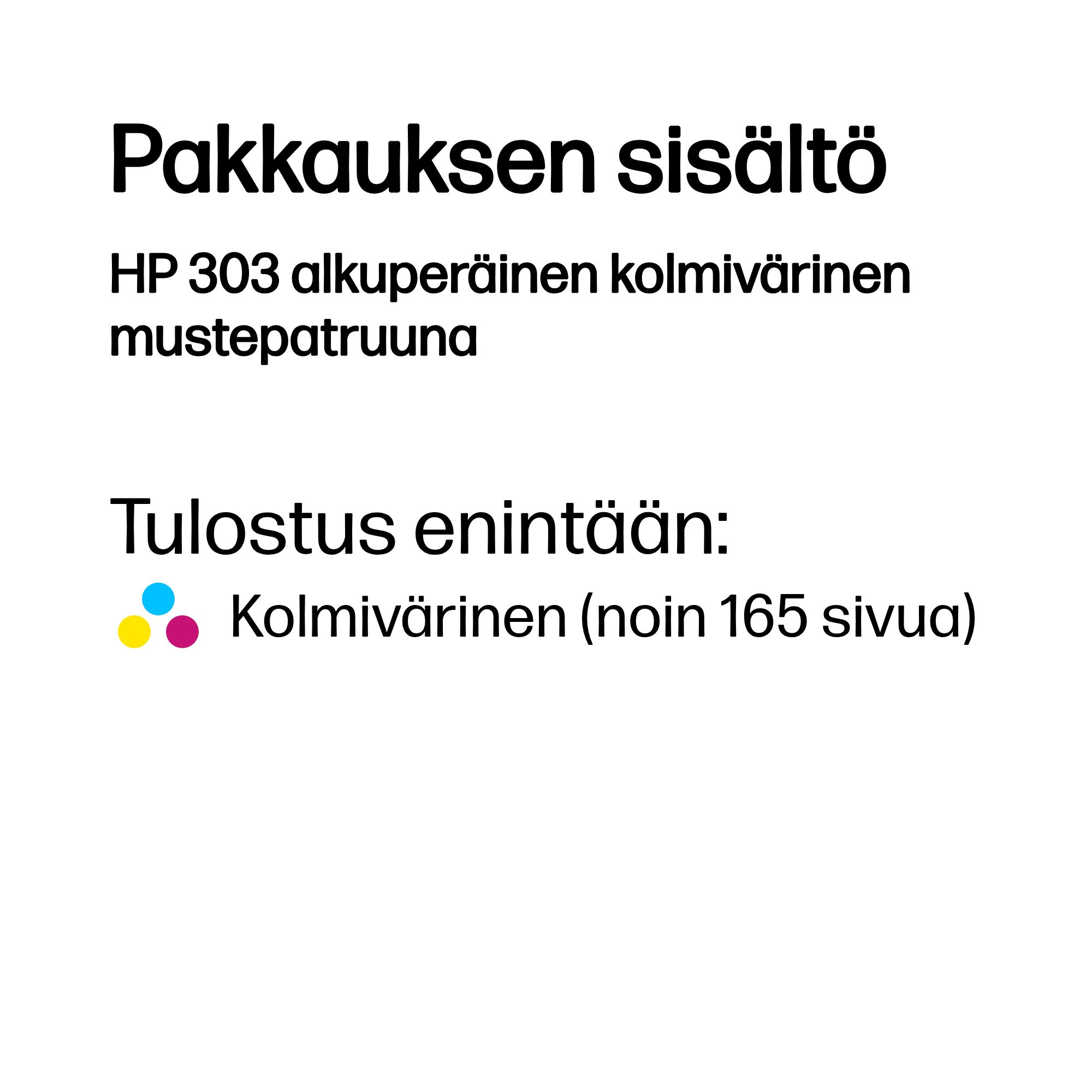 HP 303 alkuperäinen kolmivärinen mustepatruuna