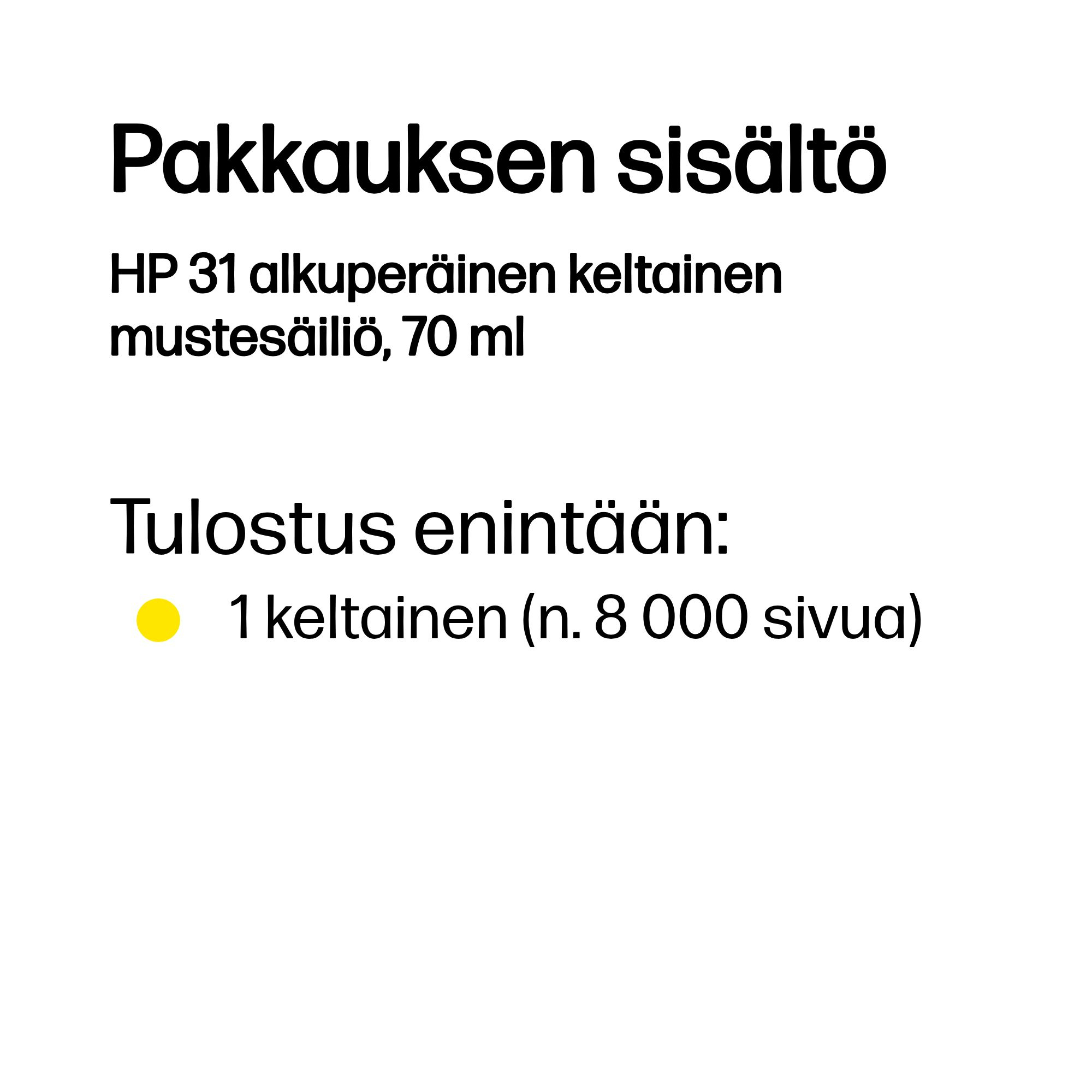 31 alkuperäinen keltainen mustesäiliö, 70 ml