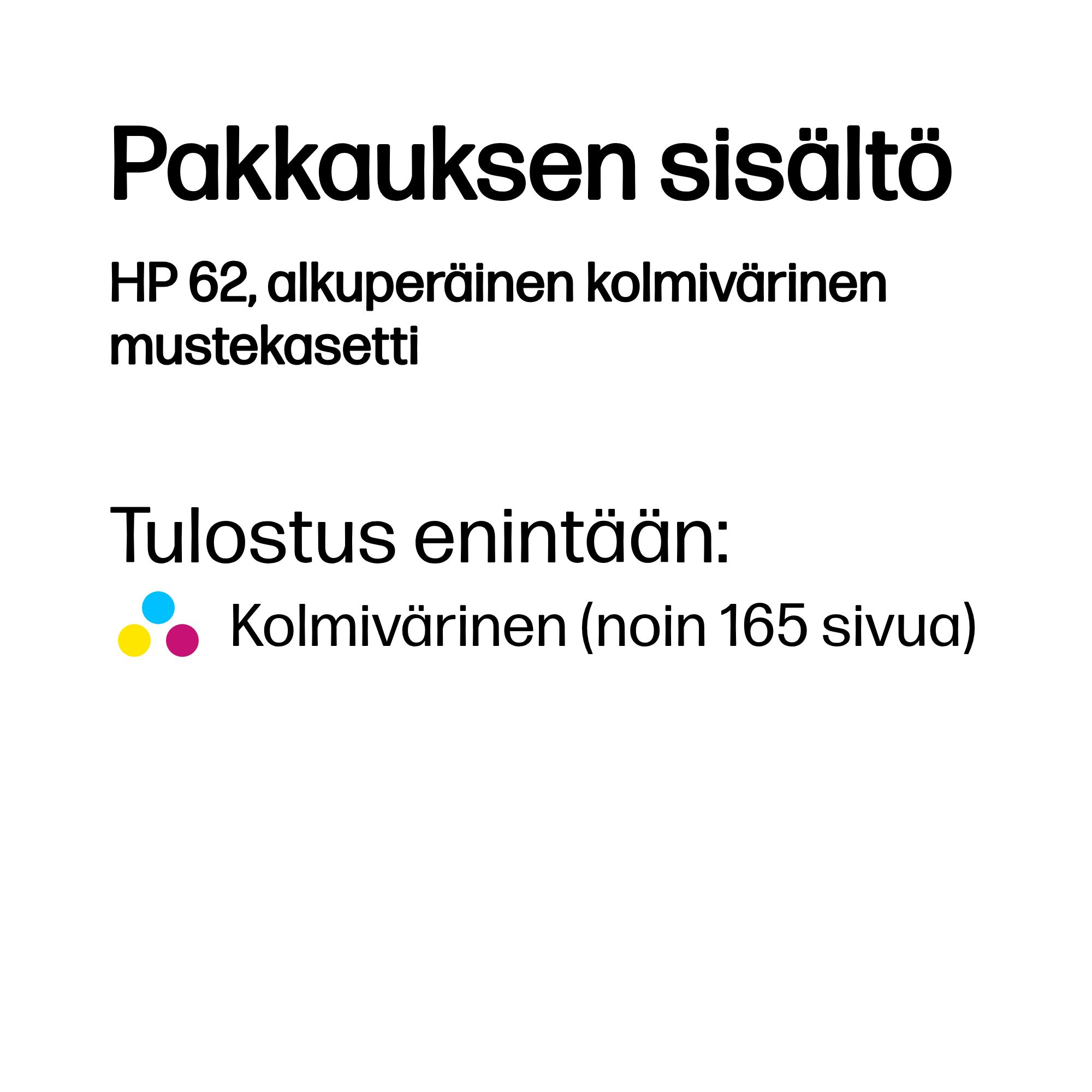 HP 62, alkuperäinen kolmivärinen mustekasetti