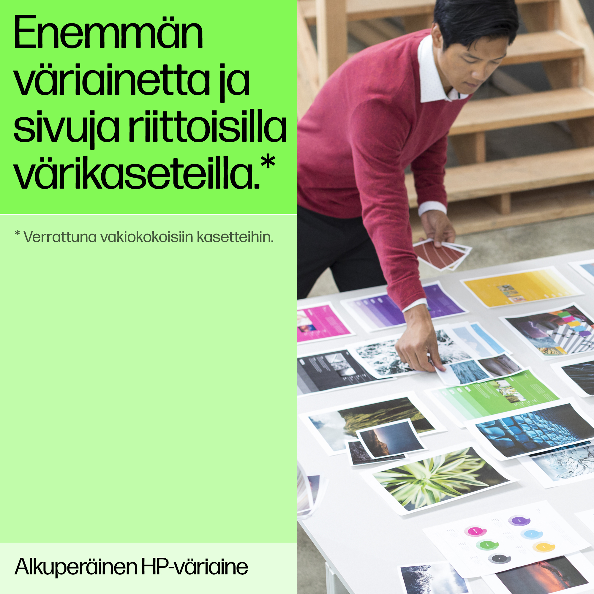 Luota alkuperäisiin HP-värikasetteihin, kun haluat tulostaa vastuullisesti ja saada erinomaisen tulostuslaadun.