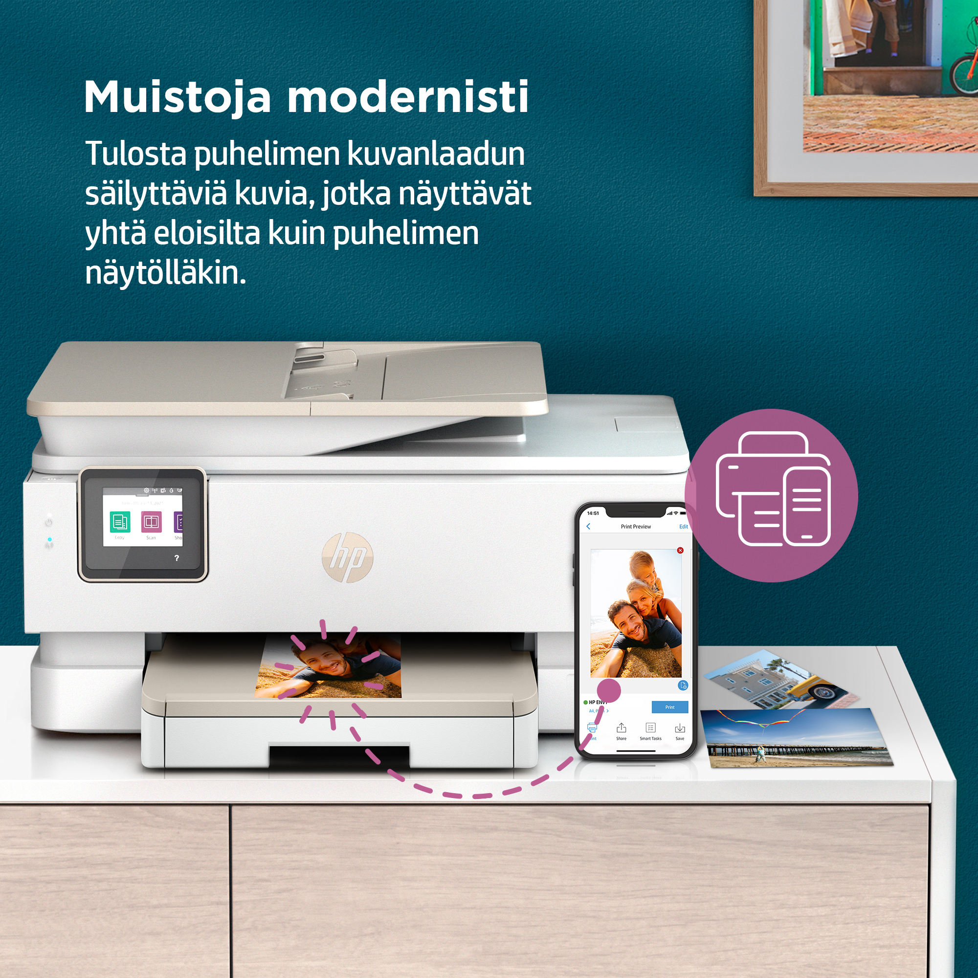 Tulosta ja skannaa suoraan puhelimestasi. Hyödynnä edistyneitä tuottavuusominaisuuksia 2 vuoden ajan HP+-palvelussa.[1]