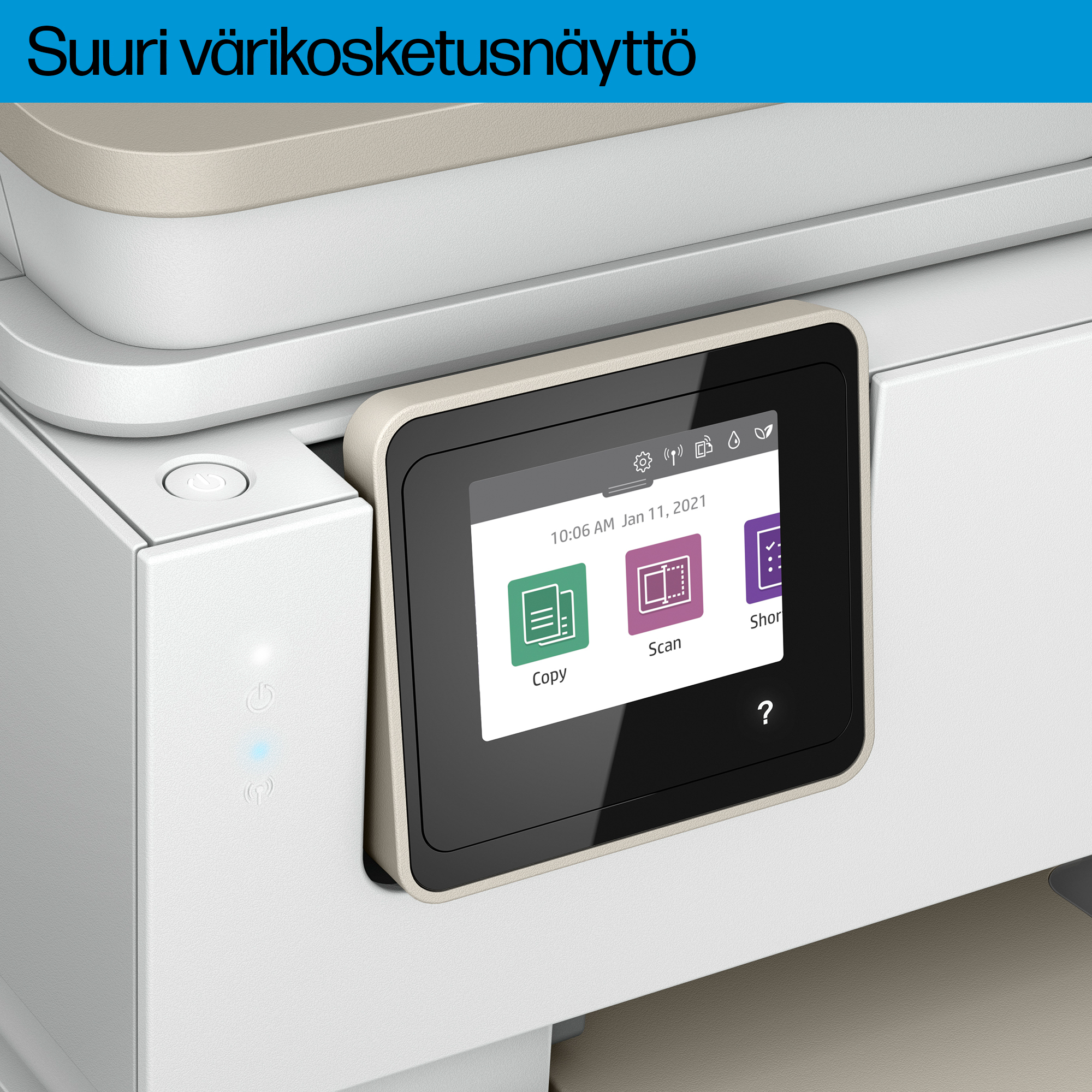 | Kestävän kehityksen tekniikat ja materiaalit | 45 % kuluttajilta kerättyä kierrätysmuovia; Kierrätettävissä HP Planet Partners -ohjelman kautta; Tulostusta ilman metsäkatoa HP+:lla |