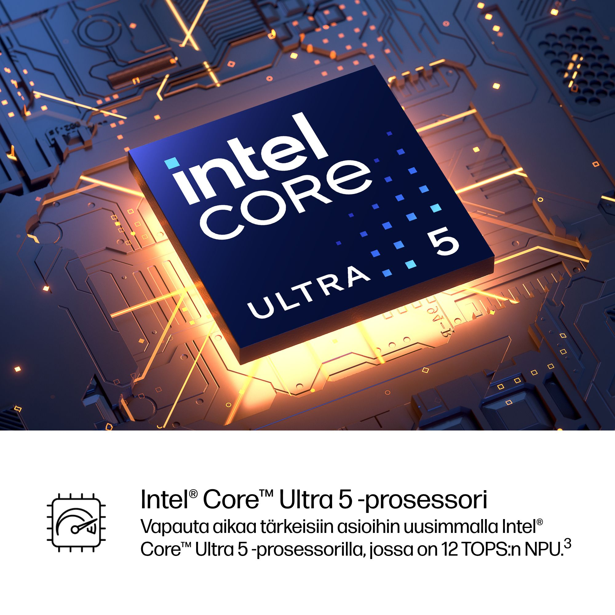 Vapauta aikaa tärkeisiin asioihin uusimmalla Intel® Core™ Ultra -prosessorilla, jossa on NPU-tekoälykiihdytin.[2,3]