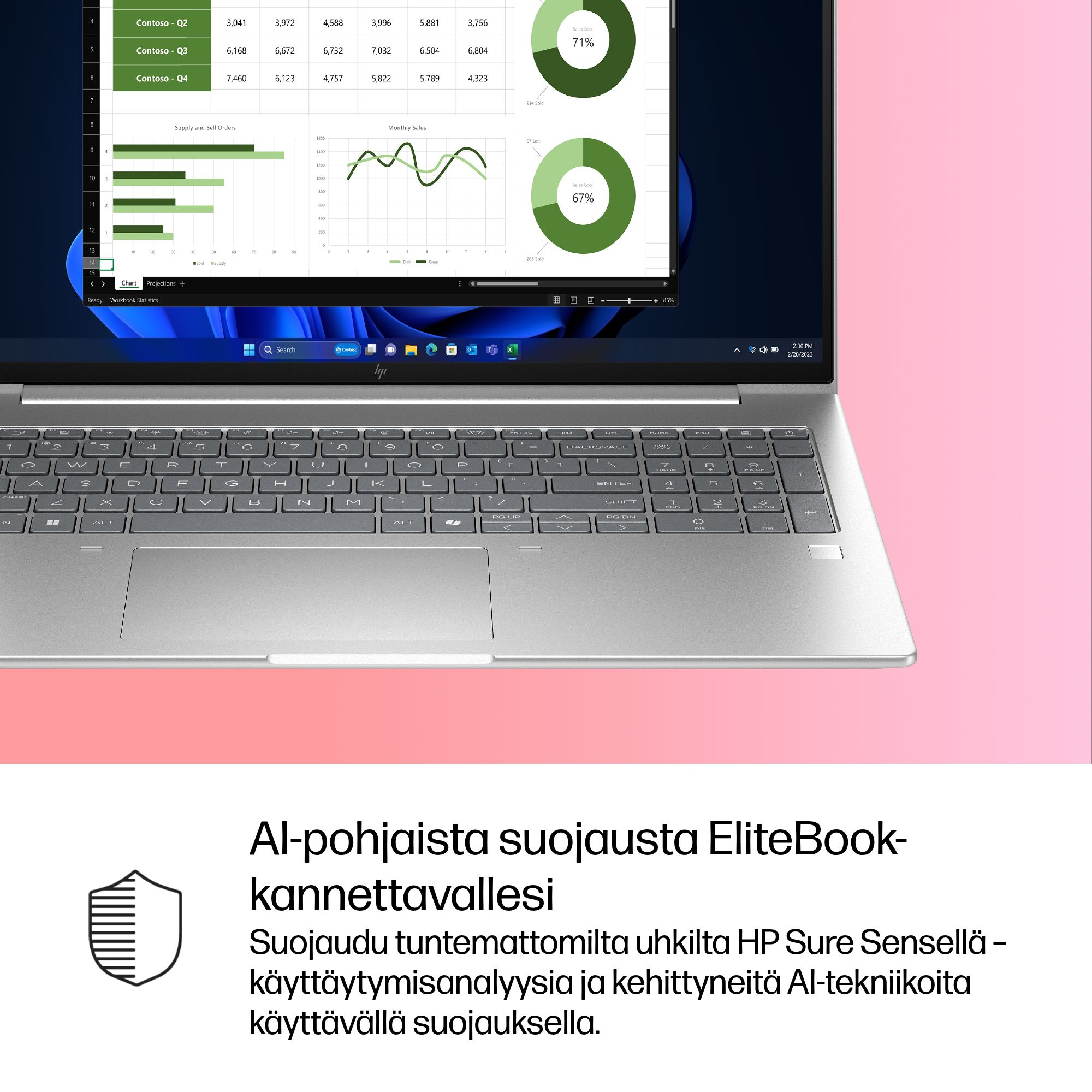 AI-pohjaiset käyttökokemukset ja moderni liitettävyys parantavat käyttäjien tuottavuutta. Konfiguroitava 16 tuuman HP EliteBook 6 G1i -AI-kannettava tarjoaa 11 TOPS:n NPU:n[3], yritystason tietoturvan ja hallittavuuden ja täyttää yrityskäyttäjien vaativat tarpeet.