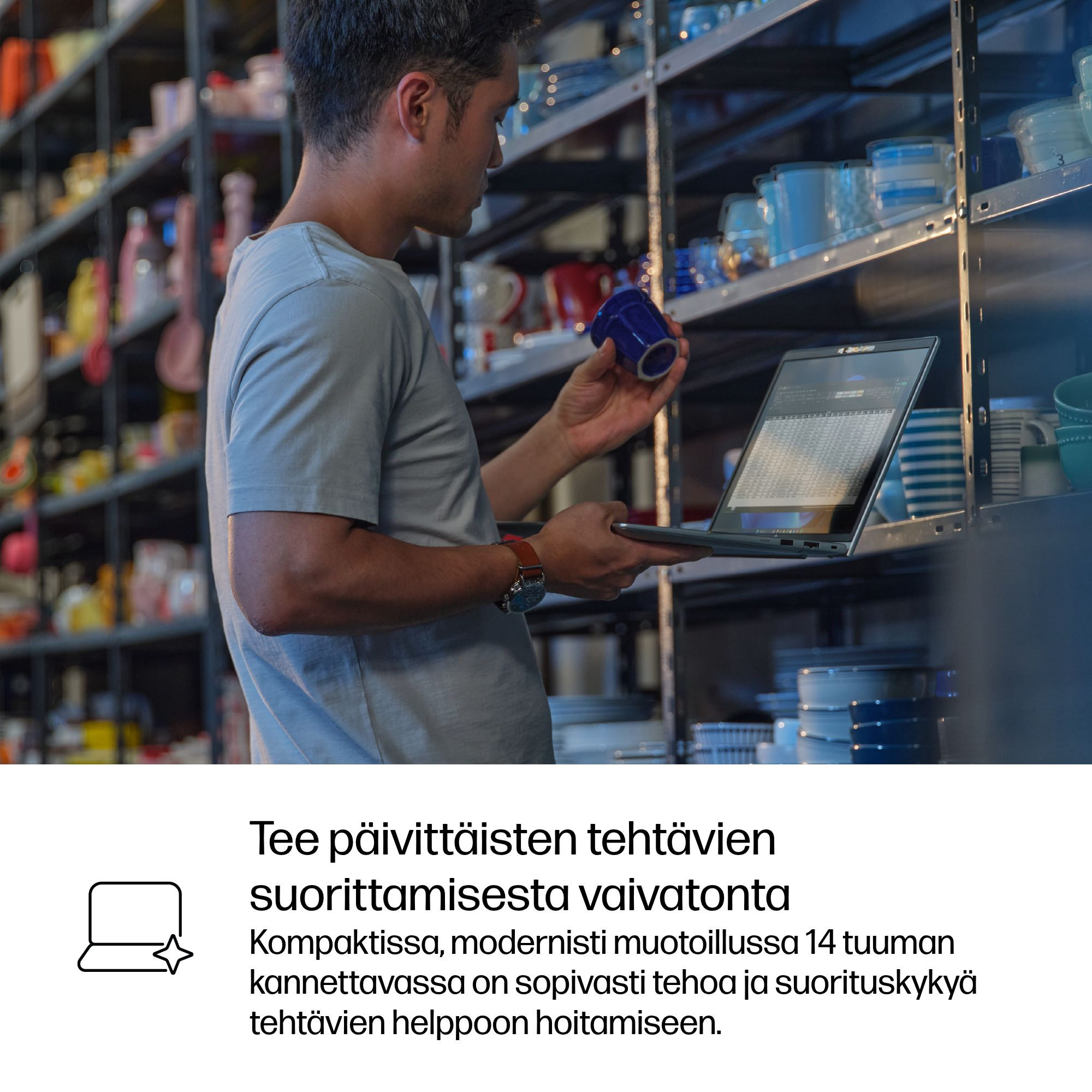 Paranna tuottavuutta työskennellessäsi kotona tai toimistolla 14 tuuman näytön 16:10-kuvasuhteella[4].